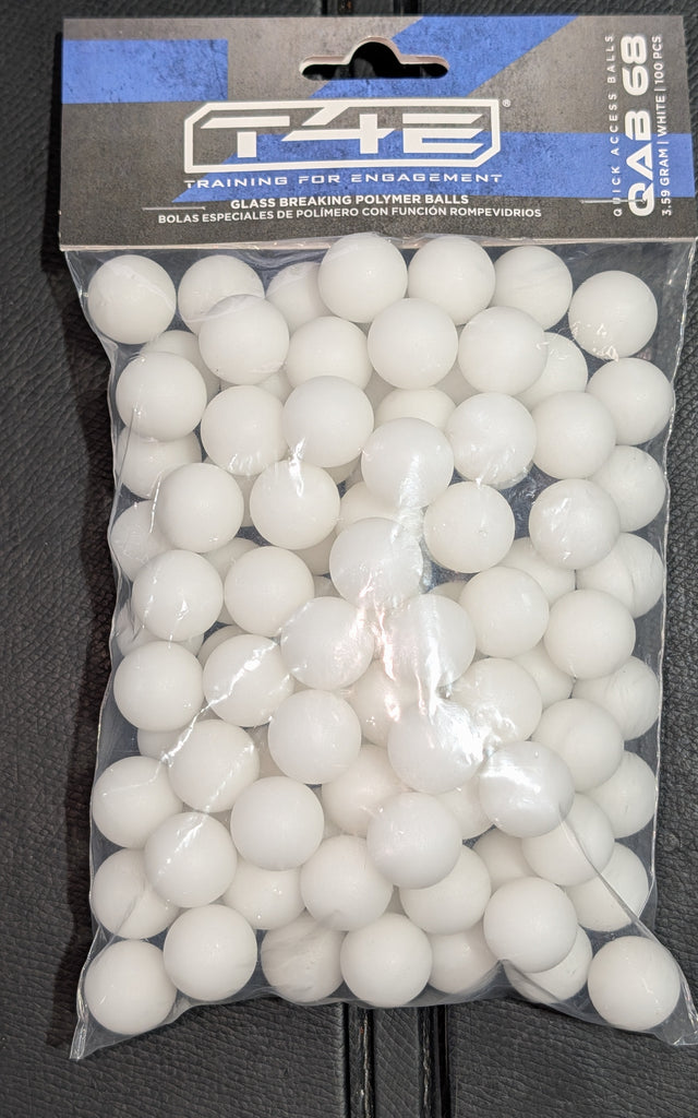 This T4E Quick Access Ball (QAB) is a solid polymer engineered round designed for smooth shooting performance. This type of ammunition transfers more impact energy than other T4E rounds.
